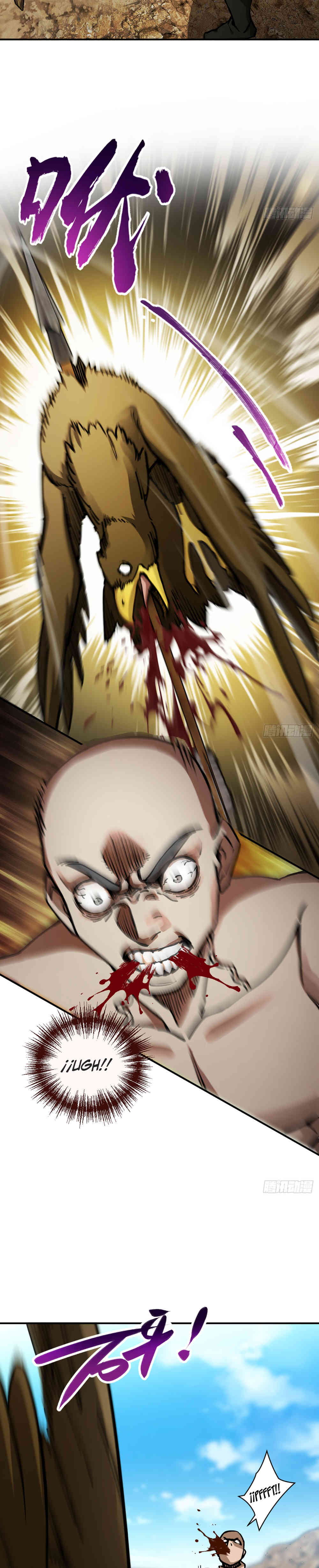 Una lluvia de sangre cae a torrentes. Un rostro mutilado flota suspendido en el cielo.
