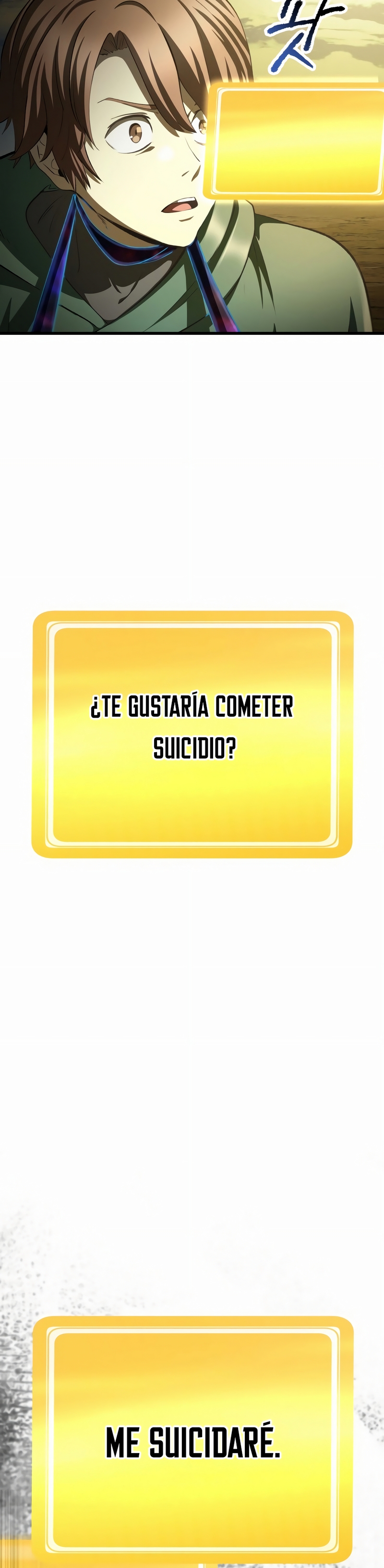 » Ha sido seleccionado como el más apto»» Con tu talento, la tasa de supervivencia [5%] en el Selha Latna es más baja. «»¿Quieres suicidarte? S/N»»X-«Menos de...